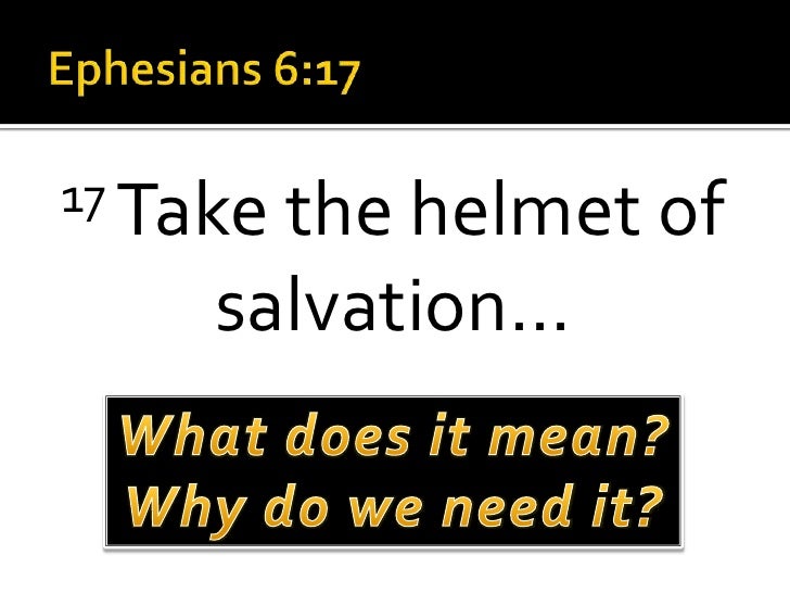 The helmet of salvation symbolizes the protection God gives us over our minds. Our weapons against sin and Satan are spiritual ones, so the helmet is not to protect our physical heads from being hurt or damaged, but to protect our minds (where our thoughts start). We need to guard our thoughts because if we think sinful things (mean thoughts ... Retrieve Here